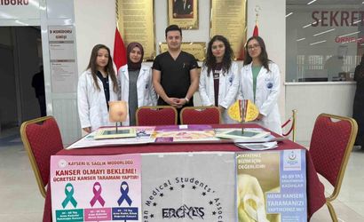 Erciyes Üniversitesi (ERÜ) Tıp Fakültesi Gevher Nesibe Hastanesi Poliklinikler Girişinde kurulan stantta, Genel Cerrahi Anabilim Dalı Araştırma Görevlisi Dr. Cihan Biçer ile Erciyes Üniversitesi Tıp Fakültesi öğrencilerinden oluşan Avrupa Tıp Öğrencileri Birliği (European Medical Students Association) Erciyes Kulübü görev aldı.