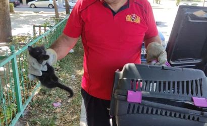 İtfaiye ekipleri, kurtardıkları kedi yavrusunu bakım ve beslenmesi için yanlarında götürdü.