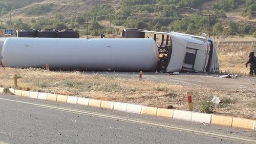 Erzincan'da devrilen kimyasal gaz yüklü tır nedeniyle Erzincan-Erzurum kara yolu kısa süreli kapatıldı.
