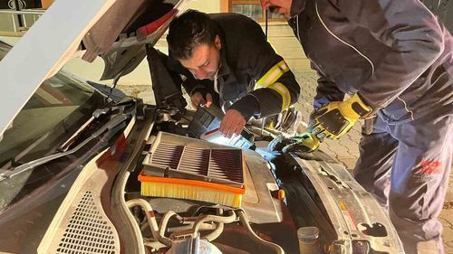 Erzincan'da park halindeki aracın motor bölümüne sıkışan kedi, itfaiye ekiplerinin hızlı ve dikkatli müdahalesiyle zarar görmeden kurtarıldı ve doğal yaşamına salındı.