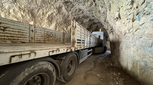 Erzincan Kemaliye'de tırın tünele sıkışması sonucu tarihi Kemaliyeliler Taş Yolu geçici olarak ulaşıma kapatıldı.