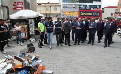 Vali Aydoğdu, Belediye Başkanı Bekir Aksun ve Erzincan AK Parti Milletvekili Süleyman Karaman, yangın sonrası esnafa geçmiş olsun dileklerinde bulunarak hasar tespit çalışmalarını inceledi.