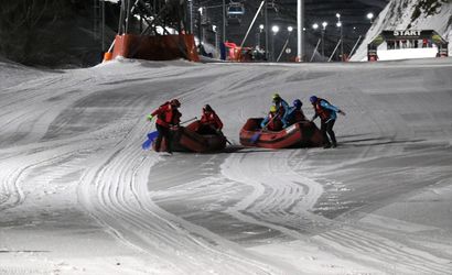 Erzurum'da Palandöken Kayak Merkezi'nin 3 bin rakımlı pistinde "Erzurum Valiliği 1. Geleneksel Macera Team Kurumlararası Bot Rafting Yarışması" düzenlendi. Kayak merkezinde Valilik, Gençlik ve Spor İl Müdürlüğü ile Erzurum Macera Off-Road Arama, Kurtarma ve Doğa Sporları Kulübü tarafından düzenlenen etkinliğe 17 kurum katıldı. Merkezin 3 bin rakımlı pist alanında sıcaklığın sıfırın altında 15 dereceye kadar düştüğü havada bir araya gelen yarışmacılar, yaklaşık 300 metrelik parkurda kar üstünde botlarla kürek çekti.