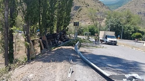 Erzurum'un İspir ilçesinde kontrolden çıkan hafriyat kamyonu devrildi, sürücü Burhan T. yaşamını yitirdi.