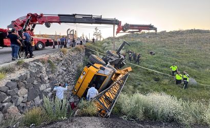 Erzurum'da, yol kenarına devrilen vinçten atlayarak kurtulmaya çalışırken aracın altında kalan operatör yaşamını yitirdi.