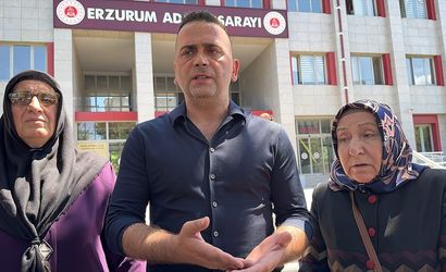 Erzurum'da eşi ve kızını bıçakla öldürdüğü ileri sürülen sanığın yargılanmasına başlandı. Maktul Kadriye B'nin kardeşi Mine Kaya (sağ 2) duruşmanın ardından adliye önünde gazetecilere açıklama yaptı.