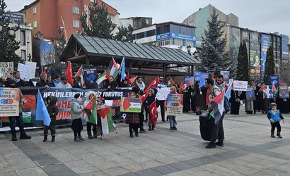 Kent merkezindeki Lalapaşa Camii önünde bir araya gelen doktorlar, tıp fakültesi öğrencileri ve sağlık çalışanları, Türk, Filistin ve Doğu Türkistan bayrakları eşliğinde, taşıdıkları döviz ve pankartlarla Yakutiye Medresesi'ne kadar yürüdü.