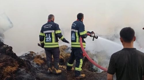 Erzurum'un Narman ilçesi Göllü Mahallesi'nde çıkan yangında 3 ev kullanılamaz hale geldi, 1000 ot balyası yandı.