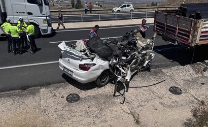 Ekiplerce sıkıştığı yerden çıkarılan otomobilin sürücüsünün kaza yerinde hayatını kaybettiği belirlendi.