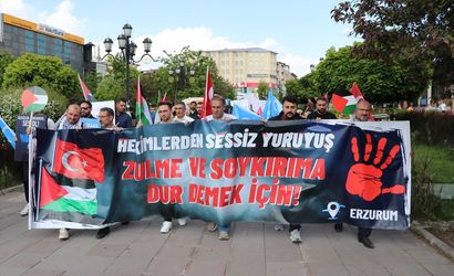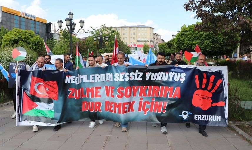 Erzurum'da hekimler ve sağlık çalışanları, Kurban Bayramı'nda İsrail'in Gazze'ye yönelik saldırılarını protesto etmek ve bu zulme dikkat çekmek amacıyla yürüyüş düzenledi.