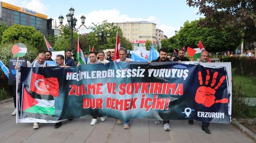 Erzurum'da sağlık çalışanları, Kurban Bayramı'nda Gazze'deki zulmü protesto etmek için yürüyüş düzenledi.