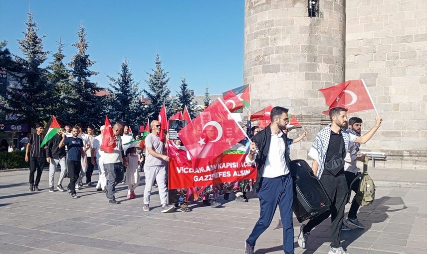 Kent merkezinde Lala Paşa Camisi önünde bir araya gelen tıp fakültesi öğrencileri ile sağlık çalışanları, Türk ve Filistin bayrakları eşliğinde taşıdıkları döviz ve pankartlarla Yakutiye Medresesi'ne yürüdü.