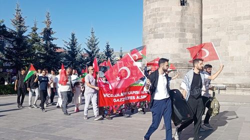 Erzurum'da hekimler ve sağlık çalışanları, İsrail'in Gazze saldırılarını protesto etmek için Lala Paşa Camisi'nden Yakutiye Medresesi'ne 94. haftada sessiz yürüyüş düzenledi.
