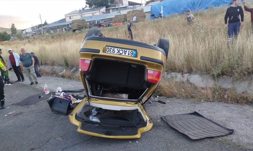 Erzurum'da takla atan otomobildeki 1 kişi hayatını kaybetti, sürücü ağır yaralandı.