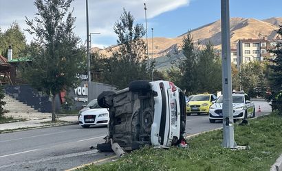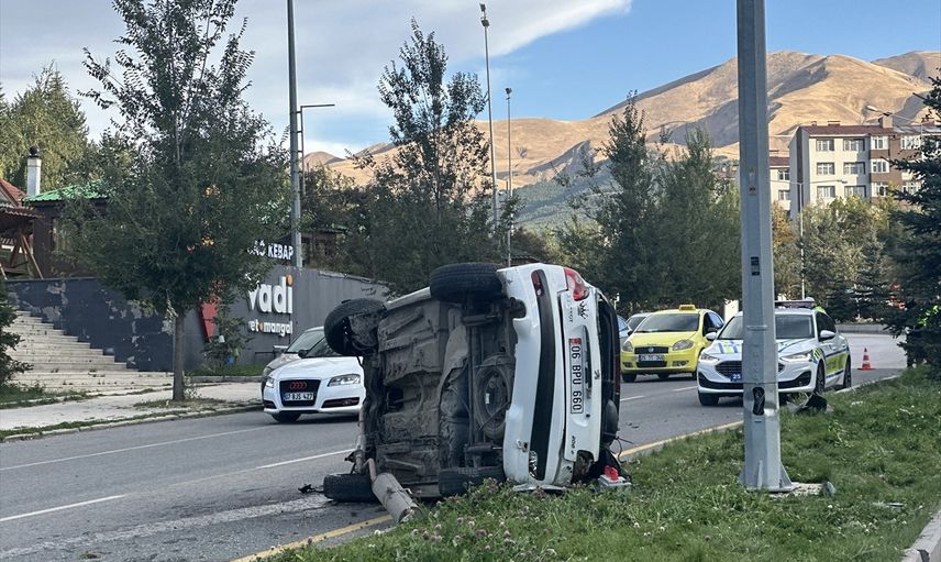 Sürücüsünün kimliği öğrenilemeyen 06 BPU 660 plakalı otomobil, Palandöken ilçesi Mevlana Caddesi'nde refüje çarptıktan sonra takla attı.
