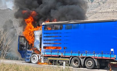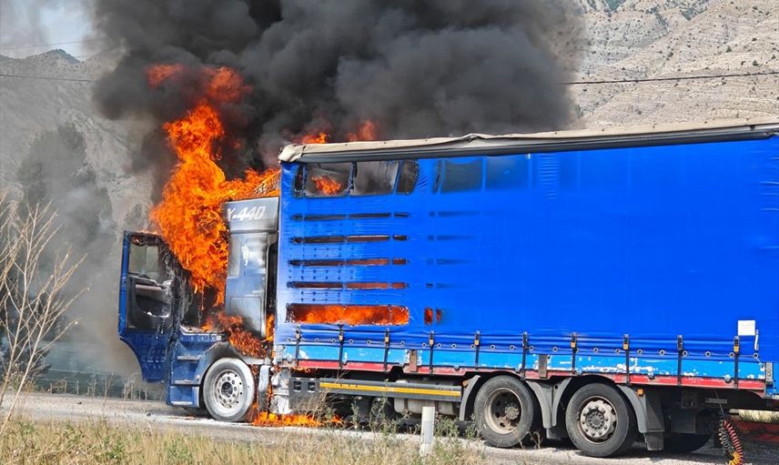 Tırın, sürücüsünün ismi ve plakası henüz öğrenilemeyen bir yabancı kargo firmasına ait olduğu belirtildi. Yangının çıkması üzerine bölgeye derhal itfaiye ekipleri sevk edildi.