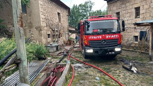 Erzurum'un Pazaryolu ilçesinde meydana gelen yangında 4 ev, 3 ahır ve bazı samanlıklar harabeye döndü.