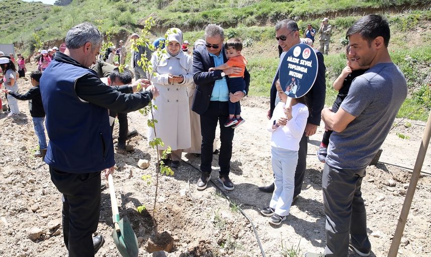 Erzurum'un Tortum ilçesinde, 2025 Aile Yılı etkinlikleri kapsamında yeni doğan bebekler için hatıra ormanı oluşturuldu. Etkinliğe yeni doğan bebekleri eşliğinde katılan aileler, protokol üyeleriyle 100 meyve fidanını toprakla buluşturdu.