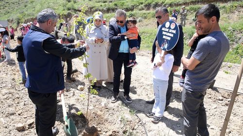 Tortum'da yeni doğan bebekler için hatıra ormanı kuruldu. Aileler, fidanları çocuklarıyla birlikte sulayacak.