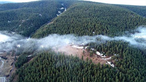 Erzurum'daki sarıçam ormanları, sağanak sonrasında oluşan sis ile etkileyici bir görüntü sundu.