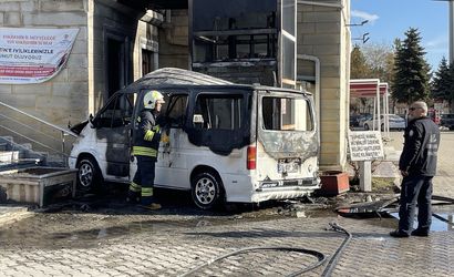 Eskişehir'in Tepebaşı ilçesinde, Fevziçakmak Mahallesi Muttalip Caddesi'ndeki İlahiyat Camisi bahçesinde park halinde bulunan bir kamyonet, aniden hareket ederek merdivenlere çarptı ve alev aldı. Hazar T. adına kayıtlı 71 ADP 504 plakalı kamyonetin neden hareket ettiği henüz belirlenemedi.