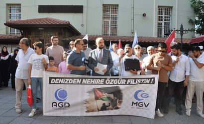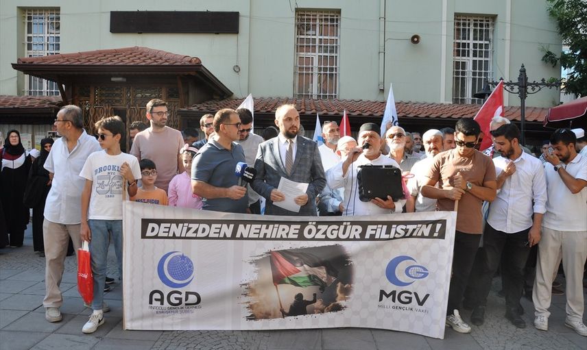 Eskişehir'de, Anadolu Gençlik Derneği (AGD) ve Milli Gençlik Vakfı (MGV) üyeleri, İsrail'in Gazze'ye yönelik saldırılarını protesto etmek amacıyla bir araya geldi.