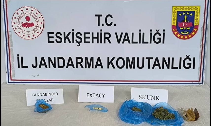 ESKİŞEHİR'DE JANDARMA EKİPLERİNCE DURDURULAN BİR ARAÇTA BULUNAN 2 ŞAHSIN ŞÜPHELİ HAREKETLER SERGİLEMESİ ÜZERİNE YAPILAN ARAMADA ÇEŞİTLİ UYUŞTURUCU MADDELER ELE GEÇİRİLDİ. ŞÜPHELİLER HAKKINDA SORUŞTURMA BAŞLATILDI.