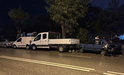 Çarpmanın etkisiyle park halindeki araç, önündeki kamyonete ve hafif ticari araca zarar vererek 3 aracın hasar görmesine yol açtı. Kazanın ardından sürücü otomobiliyle olay yerinden kaçtı.