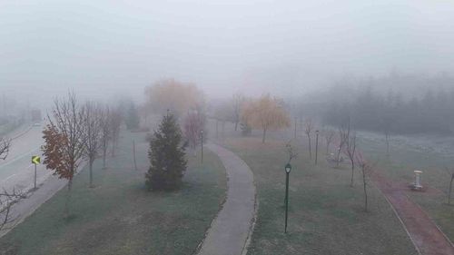 Eskişehir'de sabah etkili sis dronla görüntülendi; görüş mesafesi düştü, sürücüler temkinli ilerledi, sis ilerleyen saatlerde etkisini kaybetti.