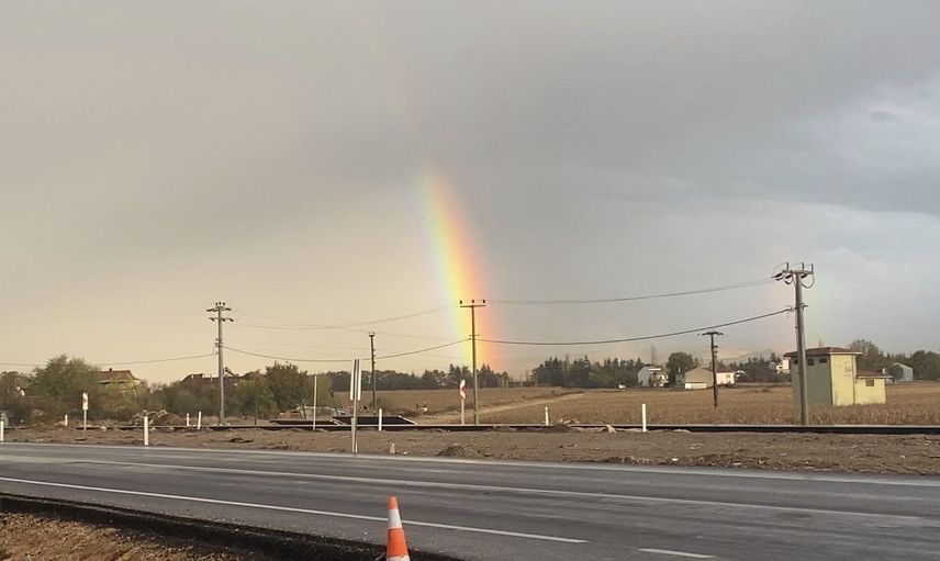 Yağışın hemen ardından Eskişehir-Alpu yolu çevresinde belirginleşen gökkuşağı, şehrin farklı noktalarından da net şekilde görüldü. O anlar cep telefonu kamerası ile fotoğraflandı.