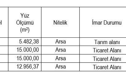 Mihalgazi ilçesinde 1 tarım alanı ile Odunpazarı ilçesinde ticari alan içindeki 3 arsa yer alıyor. Taşınmazlara ilişkin ayrıntılı bilgiler kurumun ilanında belirtilmiştir.