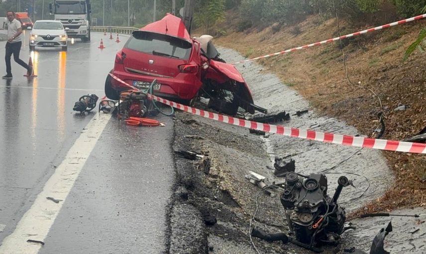 Çarpmanın şiddetiyle aracın motoru yerinden koparak yol kenarına fırladı. Olayı görenlerin ihbarı üzerine bölgeye sağlık, polis ve itfaiye ekipleri sevk edildi.