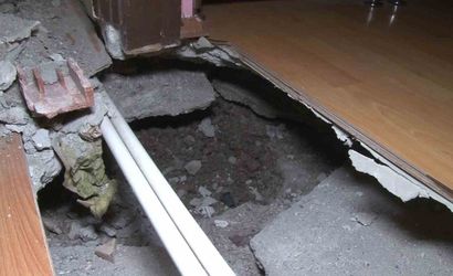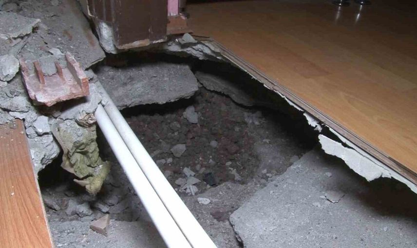 Bir başka bina sakini Osman Alkan ise, "Normalde parkeleri iki senede düzenli olarak değiştiriyoruz. Burada salonun ortasında şöyle resmen bir çukur oluştu. Binanın tabla betonu aşağı çöktü. Altında da yaklaşık 40-50 santim ve uzunlamasına tablanın çöktüğü görülüyor. Yerde toprak var. Topraklar kolonun üzerinde mi eğer kolonun üzerinde ise toprak kaydığında bu binanın hali ne olacak" şeklinde konuştu.