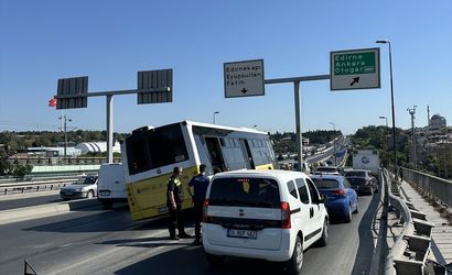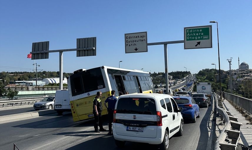 Fatih Topkapı Mahallesi 10'uncu Yıl Caddesi'nde ilerleyen, içinde yolcu bulunmayan İETT otobüsü, sürücünün kontrolünü kaybetmesi üzerine önündeki araca çarptı. Yolun ortasındaki çelik bariyerlere de vuran otobüs, bariyerlerin üzerinde çıkarak asılı kalırken, otobüsün çarpmasıyla savrulan otomobil ise bariyerlere vurarak durabildi. Kazanın yaşandığı caddede trafik yoğunluğu oluştu, polis ekipleri çevrede güvenlik önlem aldı.