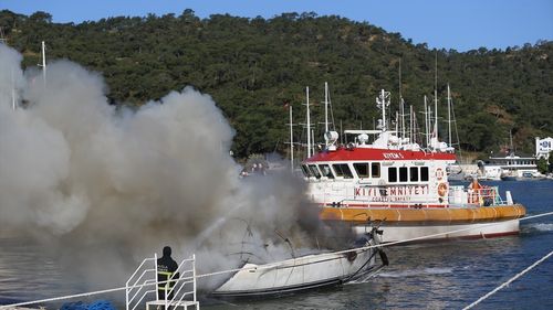 Muğla'nın Fethiye ilçesinde 3 teknede çıkan yangına karadan ve denizden müdahale ediliyor.