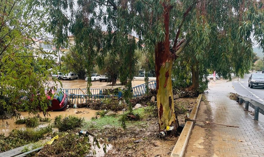 İzmir'in Foça ilçesinde etkili olan sağanak nedeniyle dere taştı, bazı ev ve iş yerlerini su bastı. Şiddetli yağış nedeniyle cadde ve sokaklarda su birikintileri oluştu.
