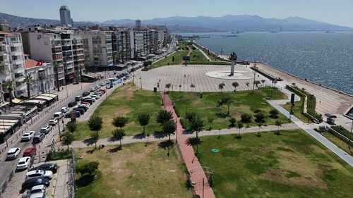 İzmir'de fön rüzgarlarıyla birleşen sıcak hava, termometreleri 42 dereceye kadar yükseltti. Hareketsiz kalan şehirde vatandaşlar sucuk yedi.