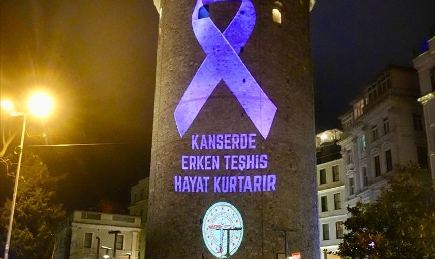 İstanbul'un tarihi mekanları arasında yer alan Galata Kulesi, önemli günlerde yapılan ışık gösterileriyle tanınmakta. Bu yıl, Dünya Kanser Günü’nde kuleye, Sağlık Bakanlığı logosunun bulunduğu lila renkli kurdele görüntüsü yansıtılarak, "Kanserde Erken Teşhis Hayat Kurtarır" mesajı verildi.