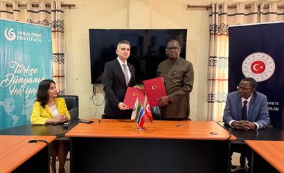 Gambiya'da, Yunus Emre Enstitüsü (YEE) ile Gambiya Üniversitesi (UTG) arasında gerçekleştirilen işbirliği protokolü, üniversite öğrencileri ve akademisyenlerine Türkçe öğrenme fırsatı sunuyor.