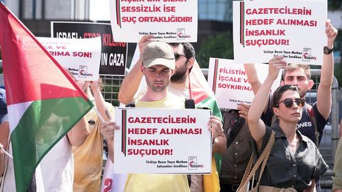 İstanbul'da bir araya gelen gazeteciler, Filistin'deki hak ihlallerini kınadı ve uluslararası kurumlardan önlem alınmasını talep etti.