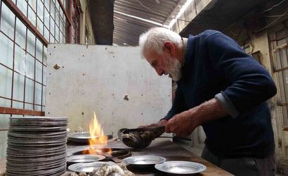 Gaziantep’te unutulmaya yüz tutmuş mesleklerden kalaycılığın en kıdemli ismi, 80 yaşındaki Osman Şimşek. 10 yaşında başladığı sanatını tam 70 yıldır Bakırcılar Çarşısı’nda sürdüren Şimşek, Alzheimer hastalığına rağmen her gün ocak başında işine devam ediyor.