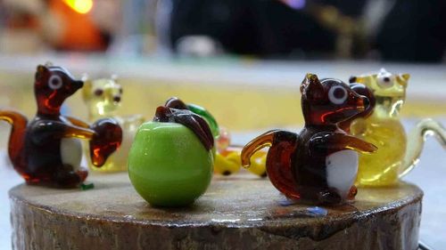 Gaziantep'te Halil Karaduman Sanat ve Eğitim Merkezi'nde kadınlar, 800 derece ısıyla cam çubukları işleyerek takı ve dekoratif eserler üretiyor.