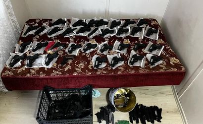 Gaziantep'in Nurdağı ve Şehitkamil ilçelerinde silah kaçakçılığına yönelik operasyonlarda 1 el bombası ile 45 silah ele geçirildi.