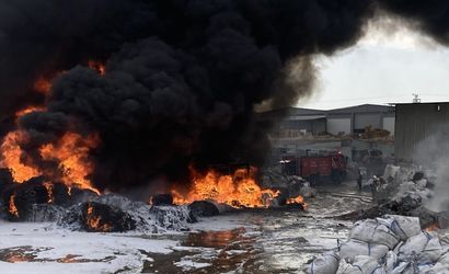 Gaziantep'in merkez Şehitkamil ilçesinde, geri dönüşüm tesisinde çıkan yangına itfaiye ekipleri müdahale ediyor.