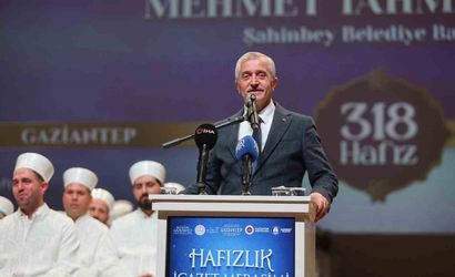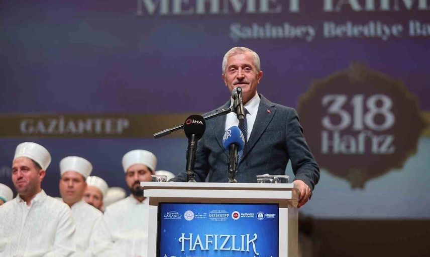 Şahinbey Belediye Başkanı Mehmet Tahmazoğlu de hafızları umreye göndereceklerinin müjdesini vererek, "Çok mutluyuz, çok gururluyuz. Burada muhteşem bir tablo var. Sağımda ve solumda hafızlarımız ve Hafizelerimiz, gerçekten cennet bahçesinin açan gülleridir. Elhamdülillah şehrimizde bu güzel tabloyu bize nasip ettiği için Rabbime şükürler olsun. Bu güzel programa vesile olduğu için Rabbimize ne kadar hamd etsek azdır. Bu gençlerimizi gördükçe şehrimiz ve ülkemiz için geleceğe çok daha mutlu, gururlu ve daha güvendi bakıyoruz" diye konuştu.