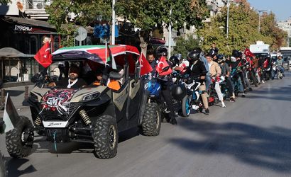Gaziantep'te Şahinbey Belediyesi ile Kudüs Platformu işbirliğinde Filistin'e destek yürüyüşü yapıldı. Ellerinde Filistin ve Türk bayraklarıyla alanda toplanan motosiklet sürücüleri, Şahinbey Millet Camisi'ne kadar kortej yaptı.