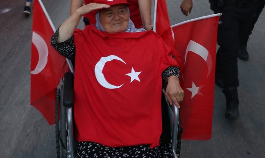 Şehitkamil ilçesindeki etkinlik için Oyuncakistan Parkı'nda toplanan vatandaşlar, ellerindeki Türk bayraklarıyla Korupark'a kadar yürüdü. Yürüyüş sırasında 200 metre uzunluğunda Türk bayrağı açıldı.