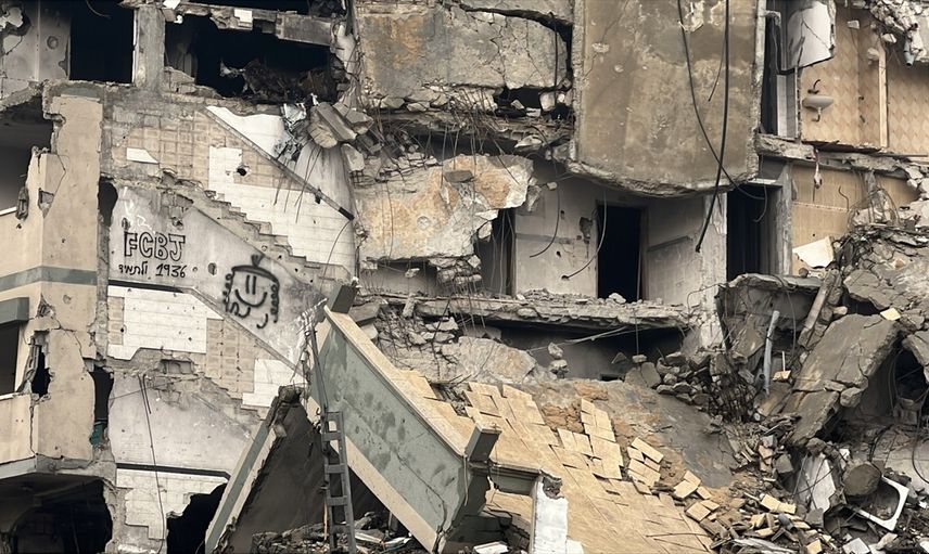 AA tarafından elde edilen görüntüler, İsrail askerlerinin Gazze Şeridi'nde Filistinlilere ait evlerin duvarlarına İbranice yazdıkları saldırgan ifadeleri gözler önüne serdi. Bu durumda, kısmen yıkılan binaların duvarlarında bulunan yazılar, İslam Peygamberi Hazreti Muhammed’e yönelik açıkça nefret dolu ifadeler içeriyor.