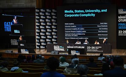 Eski Birleşmiş Milletler Filistin Raportörü Prof. Dr. Richard Falk başkanlığında İstanbul Üniversitesi Prof. Dr. Cemil Birsel Konferans Salonu’nda düzenlenen "Gazze Mahkemesi: Nihai Oturum" programının üçüncü gününde, soykırımın suç ortakları ana tema olarak ele alınıyor.