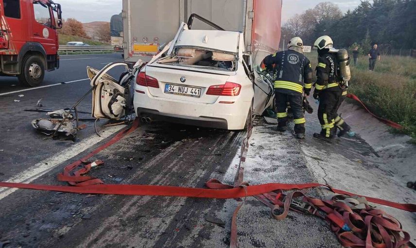 Çarpışma sonucu otomobil, dorsenin altına girerek hurdaya döndü. Olay yerine sevk edilen sağlık, itfaiye ve jandarma ekipleri müdahale etti.